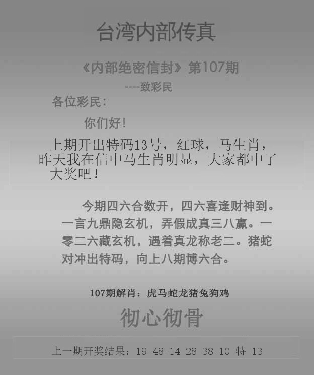 | 107期:《主攻:内幕规律平特肖:<牛>下50万》! | ||