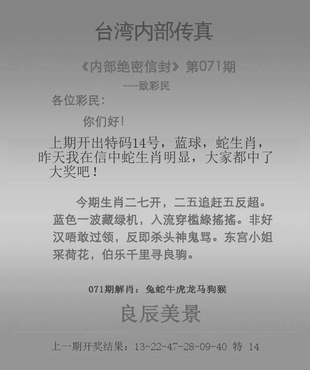 071期推荐六肖:<牛虎兔鼠蛇狗>内幕资料请大胆下注! | ||
